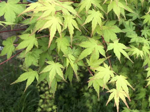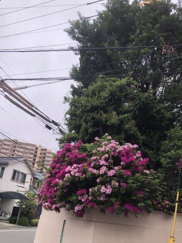 朝から靄っていて 霧雨が降ったり止んだり 風も吹いたり止まったり 花粉の飛び交いで濁っていた空気がやっと澄んできた 葉の緑が際立ち 鴻巣山の緑の稜線が久しぶりで望める 通り抜けの樹々もわっさわっさ