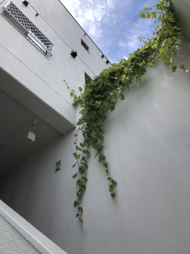 西の空に湧く入道雲 上って行った先から大濠花火大会の花火が望める 別れの重さが忘れさせてしまうようだが、色々あった家族にも夏の良い思い出はある 夏になると這って出る 白い壁に合うので一時、揺れている