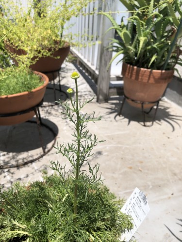 ジャーマンカモミールが花茎をのばしています どういう育ち方をするのかと見守っています 少し鉢が浅かったかな それにしてもこの夏はハーブにとっても中々なもんでしょう せいぜい水やりを怠ることなく日々過ごさねば・・・