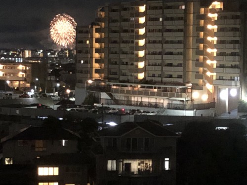 マンションの隙間 那珂川市花火大会の花火が望める 夏休みが終わる 後一週間