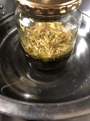 レモングラスのアルコールによるエキス抽出後、オイルを入れてアルコールを取り除く 三日間目安 レモングラス
