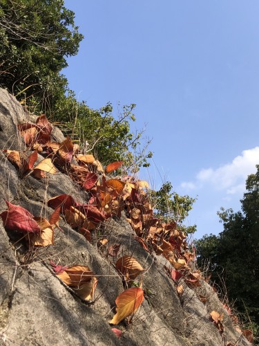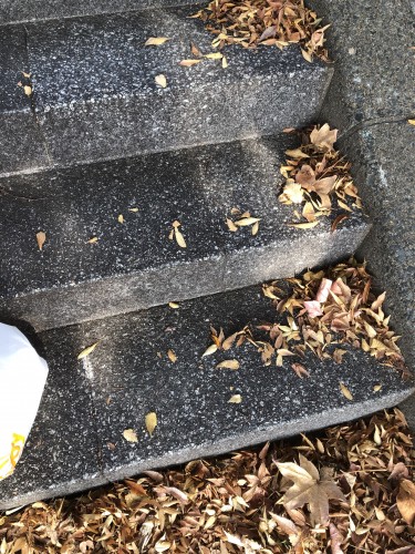 まだ、たのしめる吹き寄せられている枯葉の積もり具合」