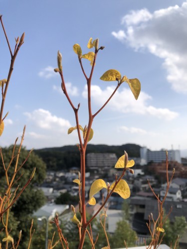 夏の太陽にやられて焼け落ちていた黒文字が花芽を出して冬を越す準備