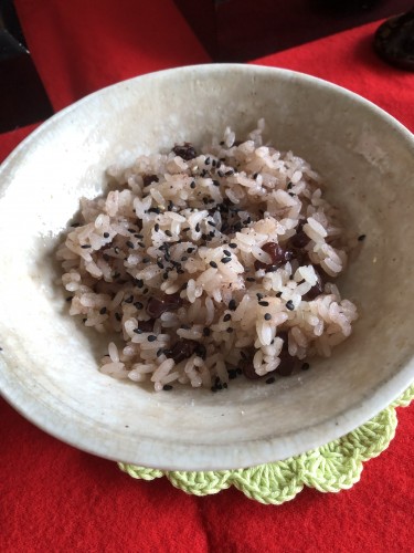 終日雨 ちらし寿司は食べ過ぎるのでおこわにしてみた ですがやっぱり華やかさに欠けるなー 賑やかな色合いが欲しい
