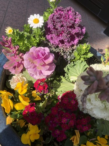 行く時に造作されてたのが出来上がっている寄せ植え すこし冷える ここから乗ると動物園の動物あれこれ知識 深い〜ゐ