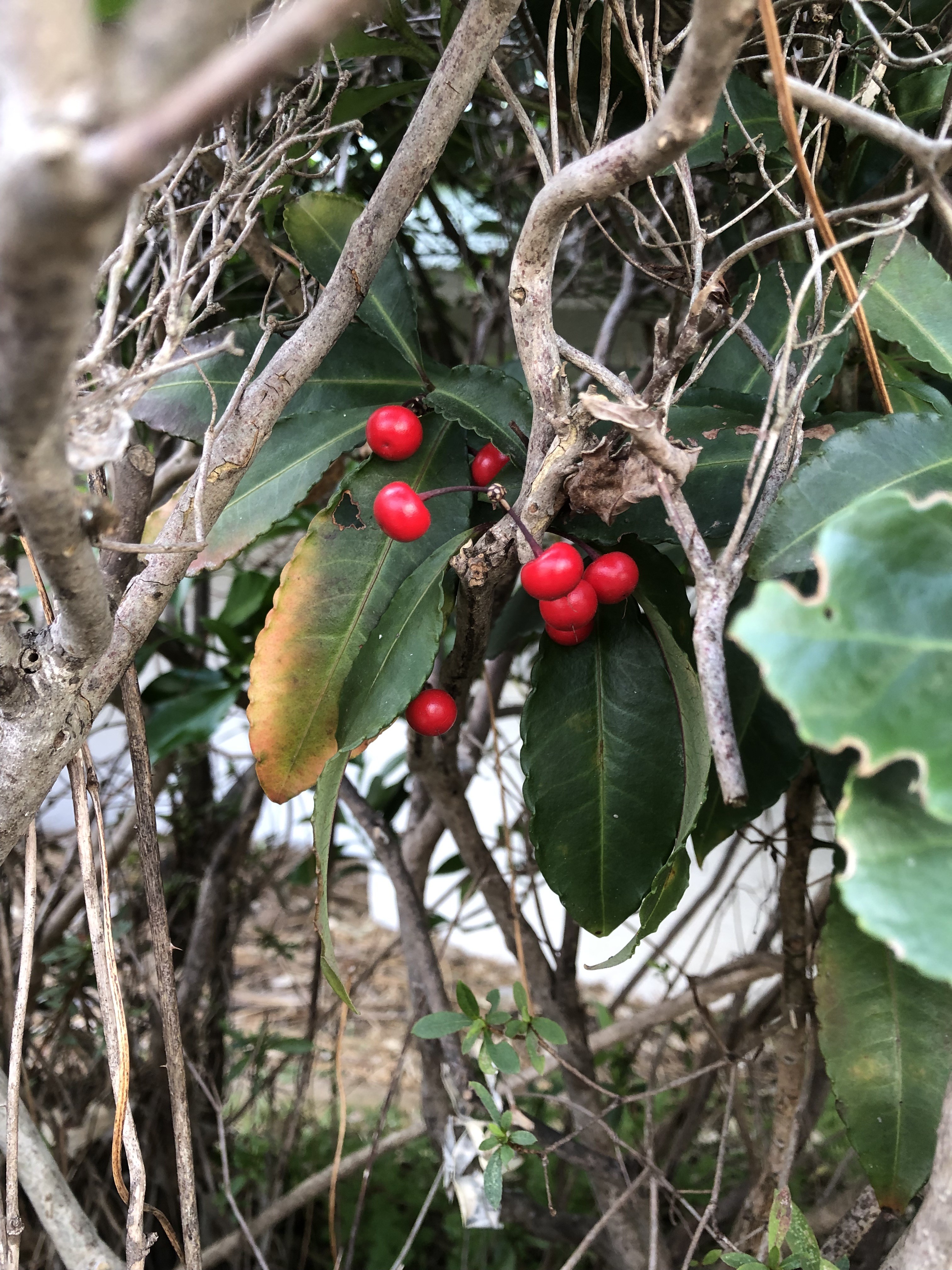 この実を見つけるのは鳥さん方無理かな 怖いぐらい綺麗 もう終わるようだ この赤が韓国の赤