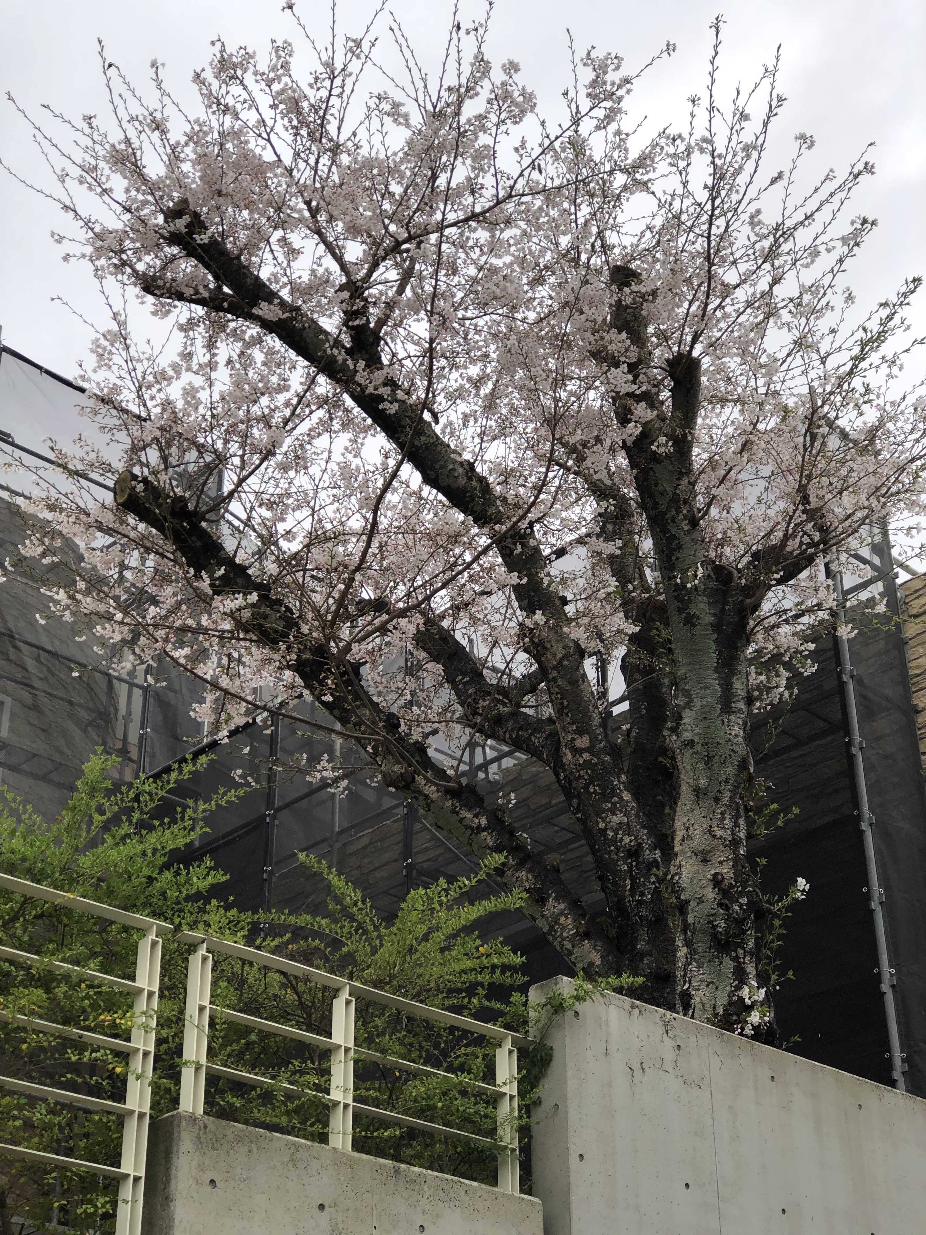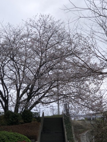 空はまだ降る様子 無事に今年もありがとう一本桜 もう世話できんと云われて短くなった太い幹に朽ちる前の姿を見る 立ったままの幹に菌が生え上がり風情がある 花の枝がそれなりに伸びて九分咲き